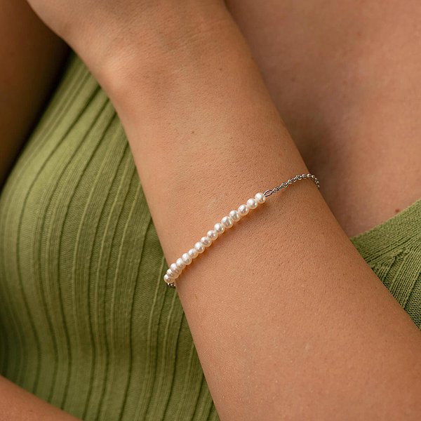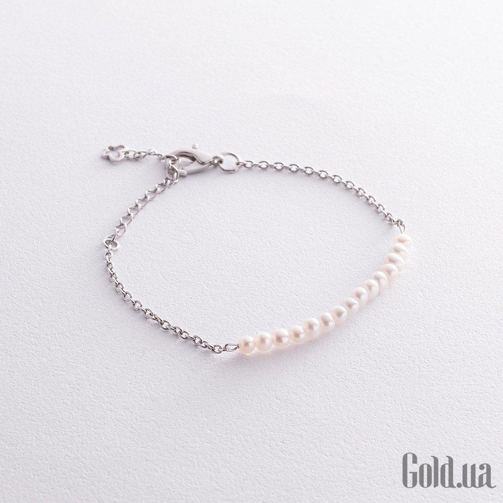 Жіночий срібний браслет з культив. перлами