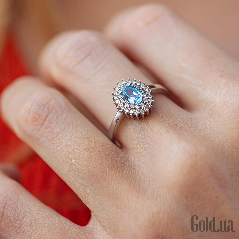 Жіноче срібне кільце з куб. цирконіями та топазом