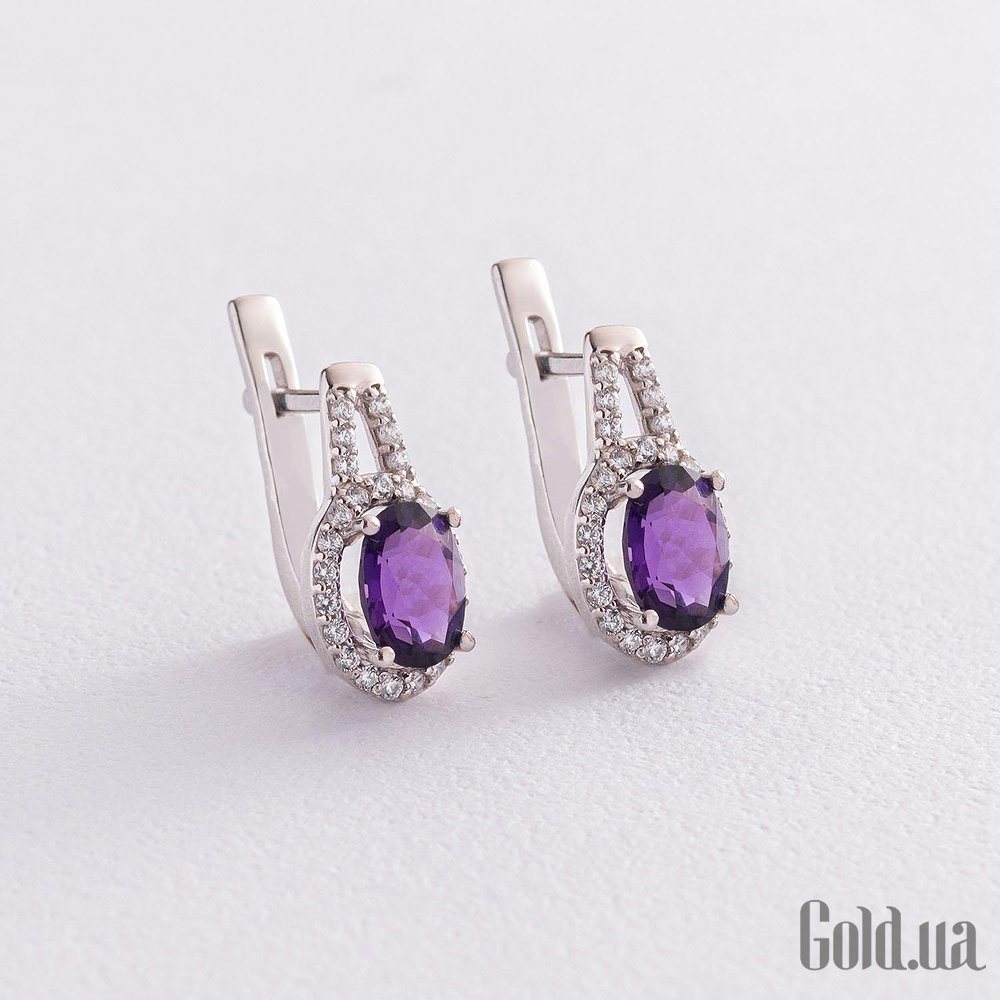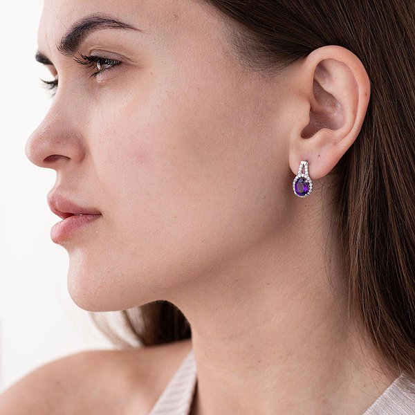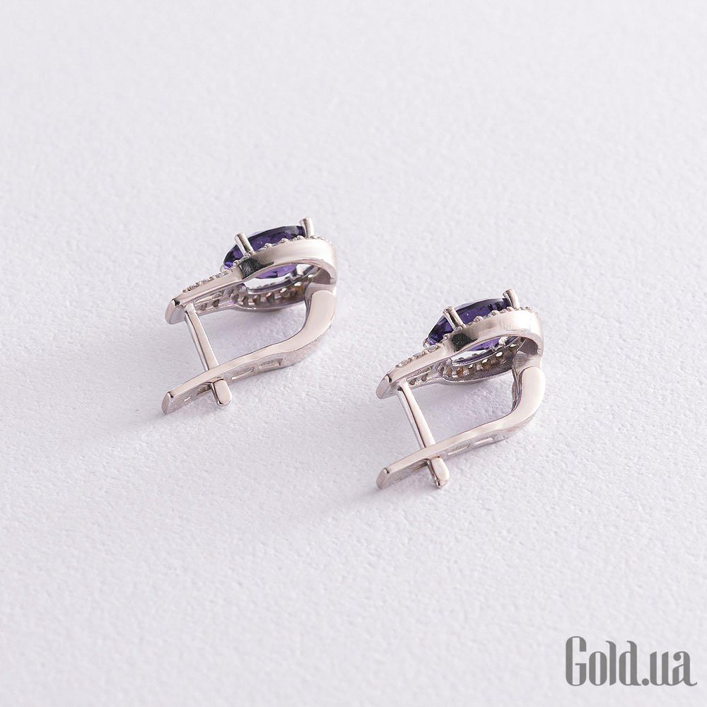 Срібні сережки з куб. цирконіями та аметистами