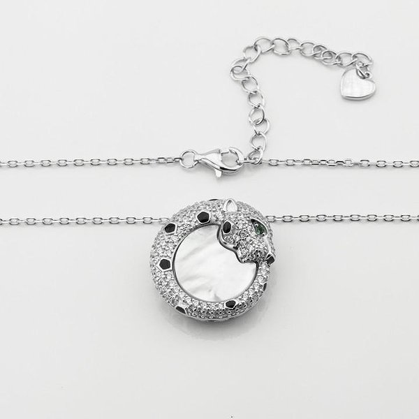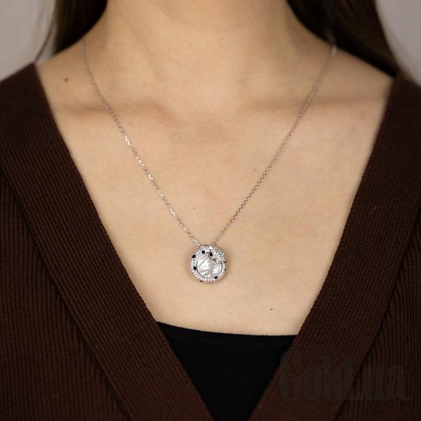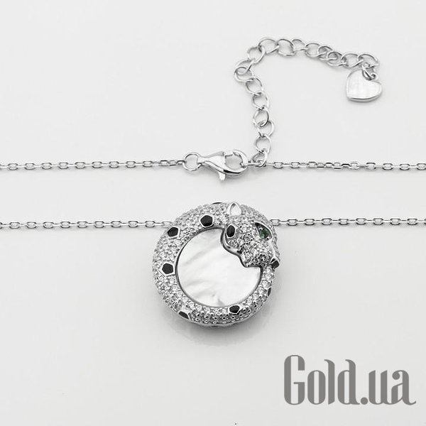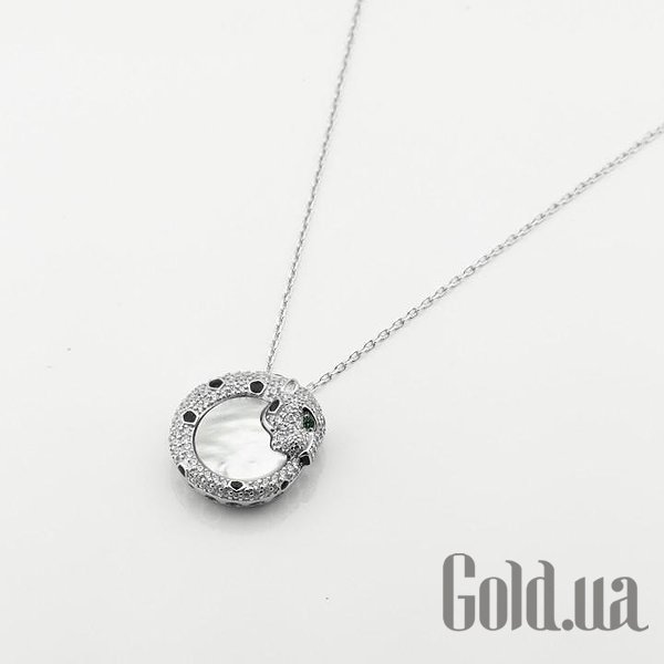 Срібне кольє з куб. цирконіями, перламутром і емаллю