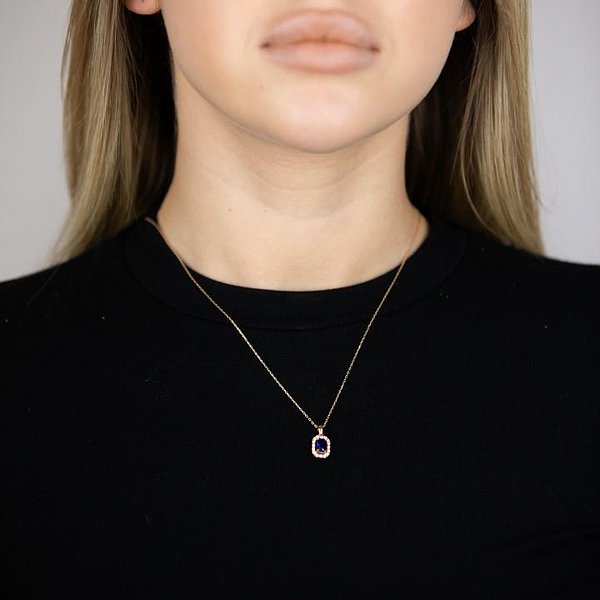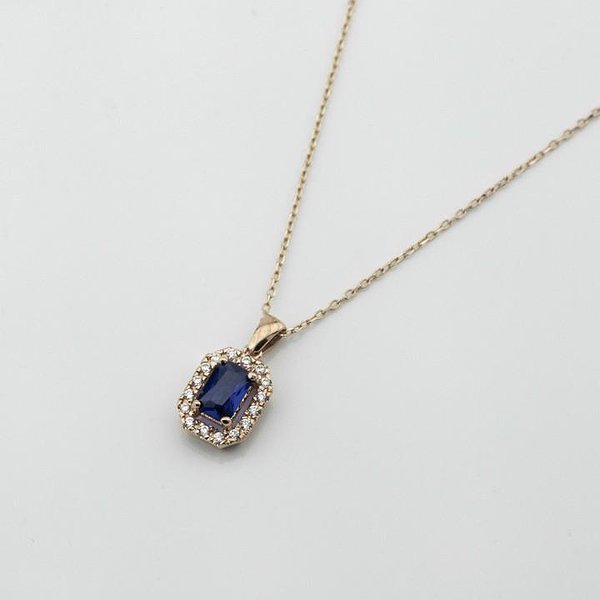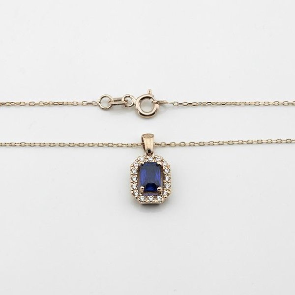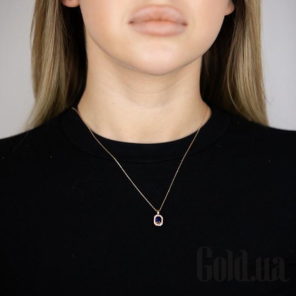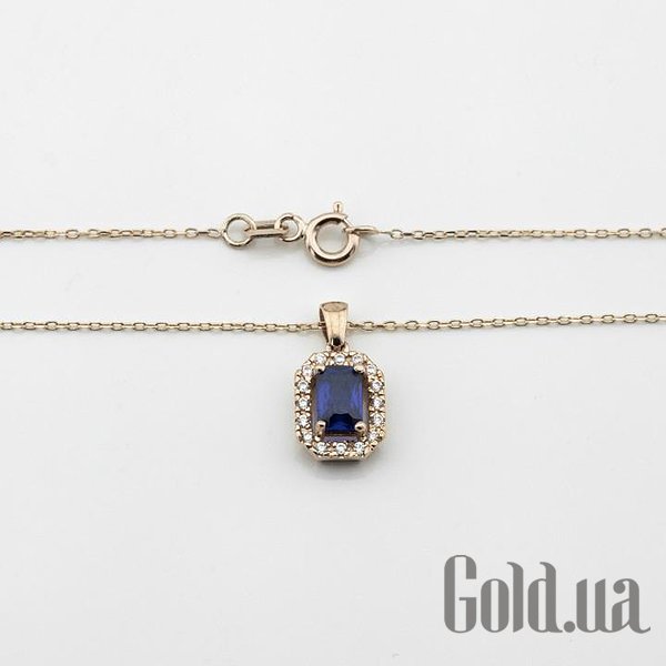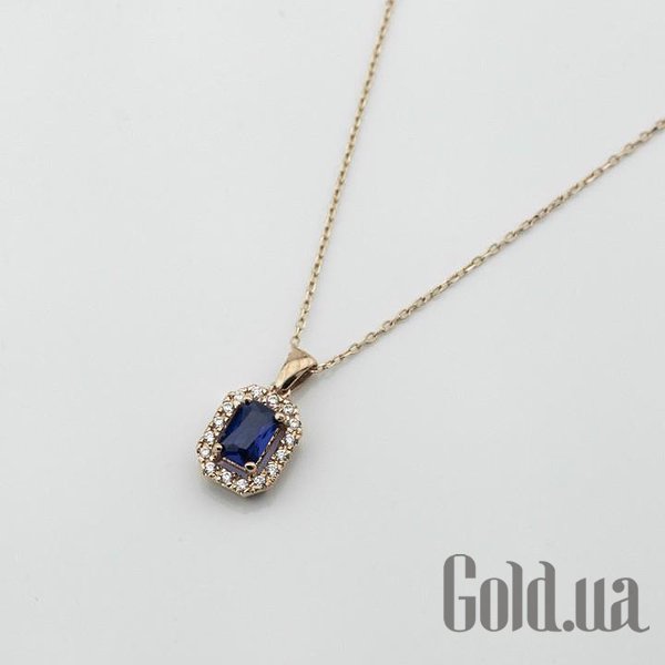 Золотий кулон з ланцюжком з куб. цирконіями і синт. сапфіром