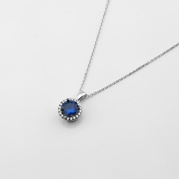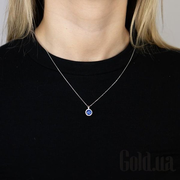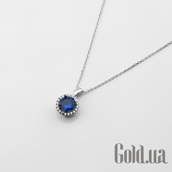 Золотий кулон з ланцюжком з куб. цирконіями і синт. сапфіром