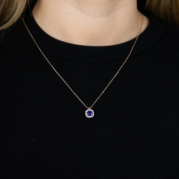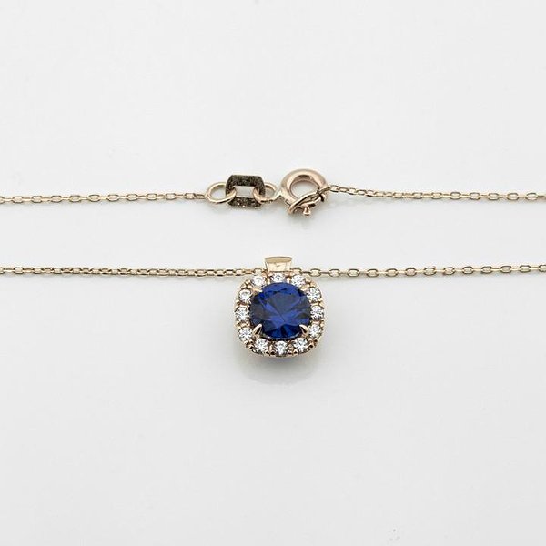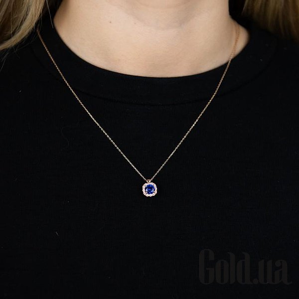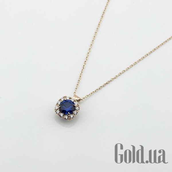 Золотий кулон з ланцюжком з куб. цирконіями і синт. сапфіром
