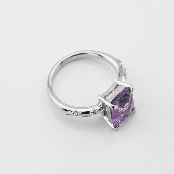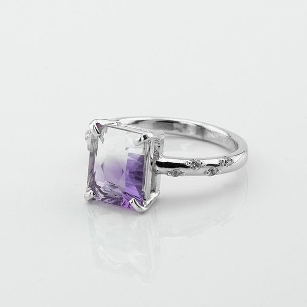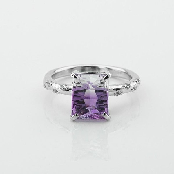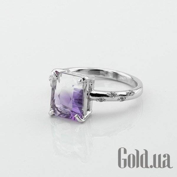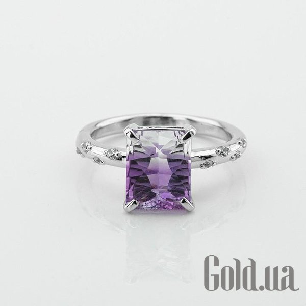 Жіноче золоте кільце з куб. цирконіями та аметрином