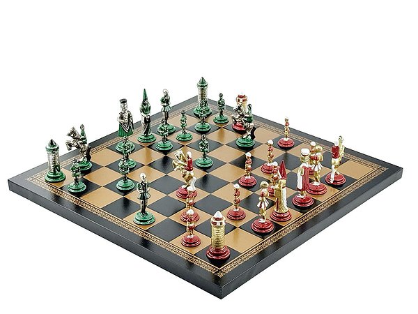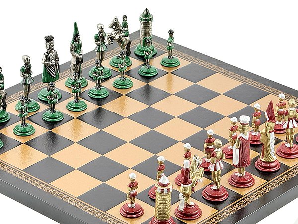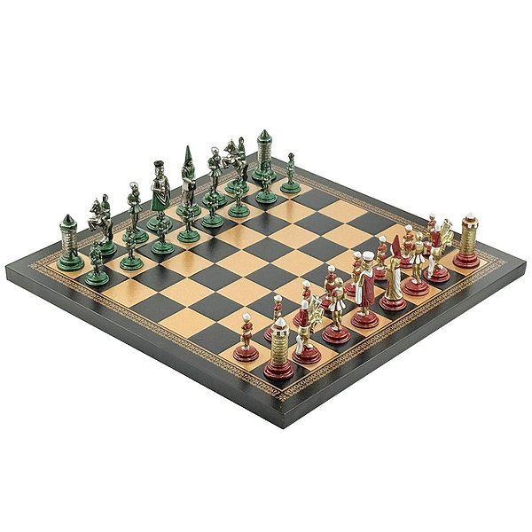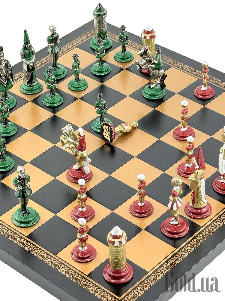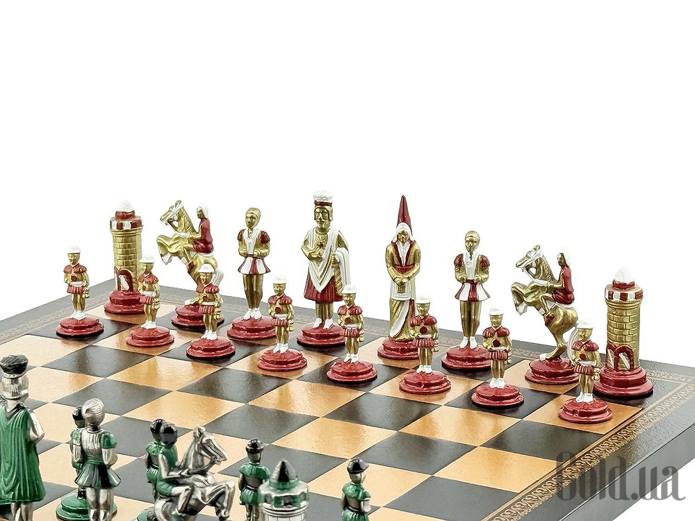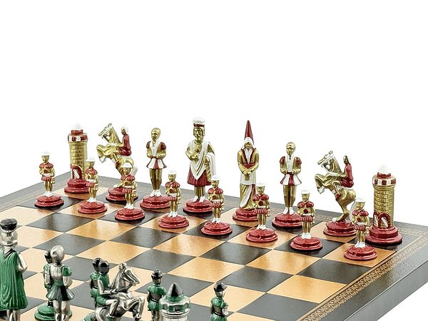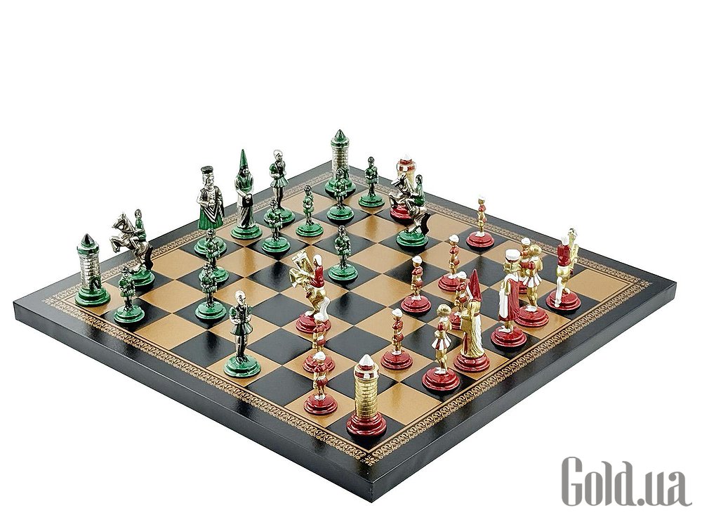Відкрийте атмосферу середньовіччя з колекцією Mediaevale від італійського бренду Italfama. Набір поєднує виразний історичний дизайн фігур з благородних металів та елегантну дошку з екошкіри з ручним оздобленням. Ідеальний вибір для гри, колекції чи статусного подарунка.