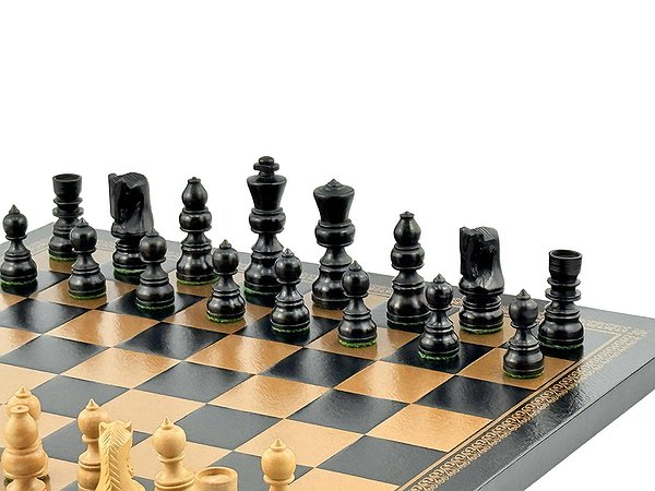 Дошка з екошкіри гармонійно доповнює дерев'яні фігури, створюючи елегантний, повністю готовий до гри комплект.
