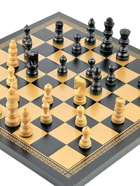Фігури виготовлені з натурального дерева Palisandro Dorato та обтяжені для кращої стійкості під час гри.