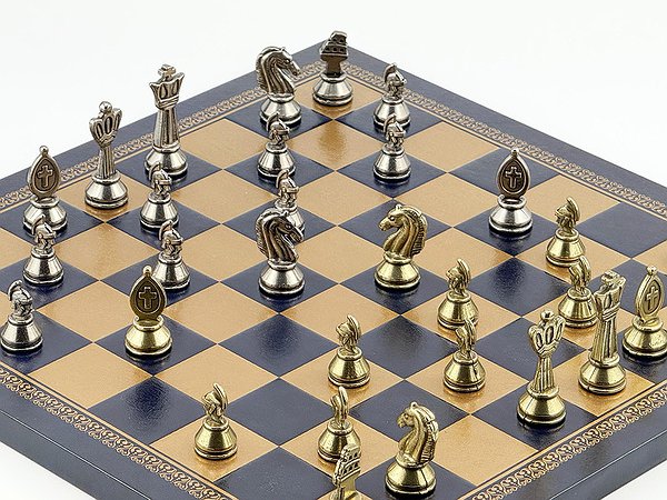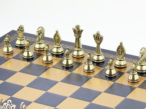 Дань поваги римським легіонам та імператорській елегантності. Пропонуємо унікальний колекційний шаховий набір італійського бренду Italfama. Він поєднує масивні металеві фігури ROMAN з компактною, вручну обробленою дошкою з екошкіри в багатому кольорі Gold/Navy Blue. Ідеальний вибір для любителів історії, поціновувачів розкішної майстерності та шахів.