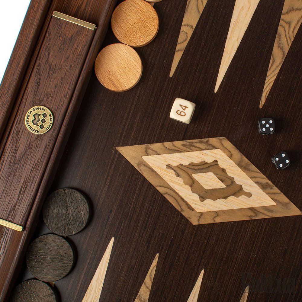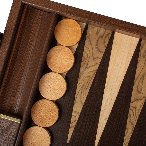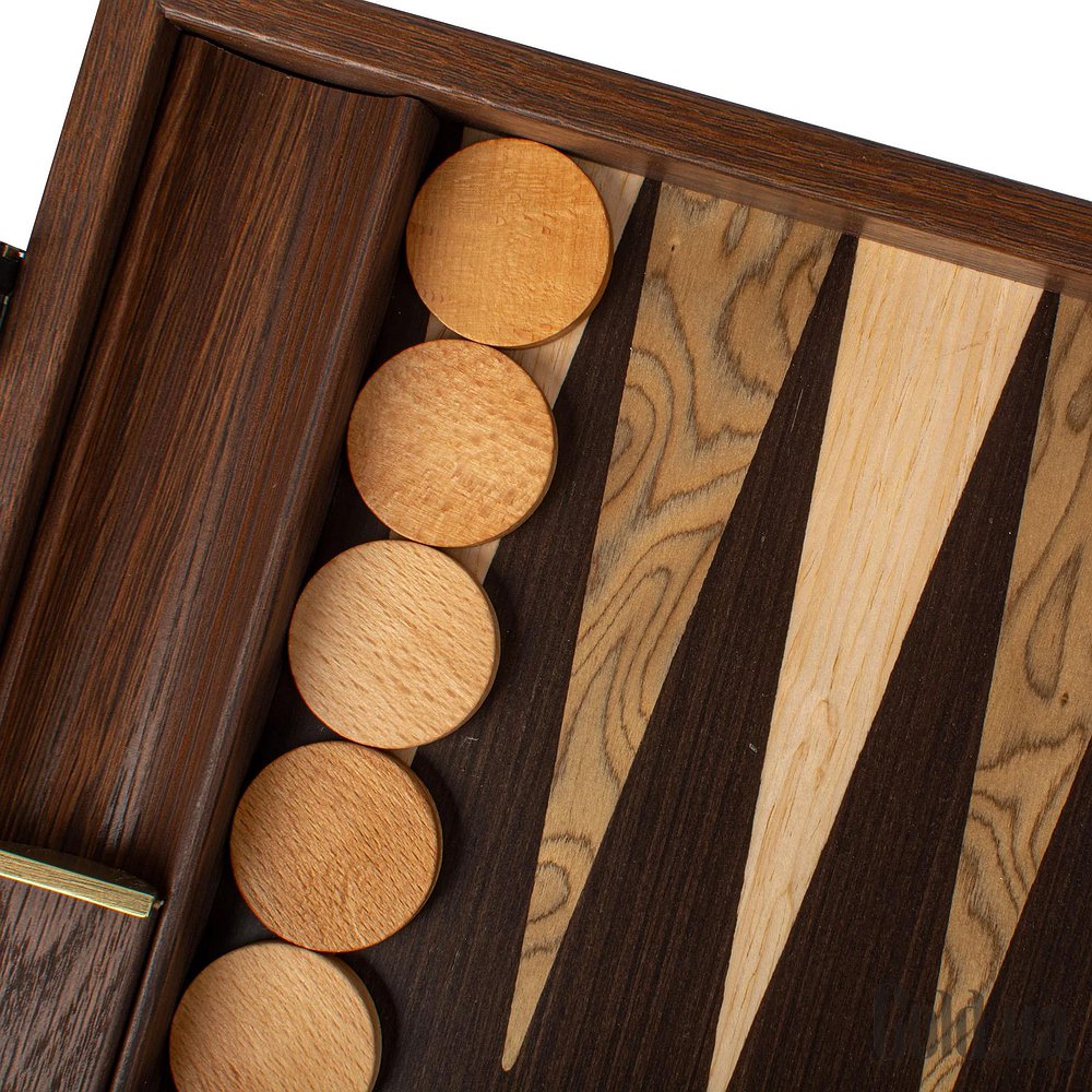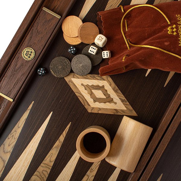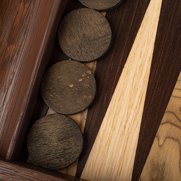 Ігрове поле виконане з преміального чорного дуба, відомого своєю міцністю та виразною текстурою, та доповнене горіховими та сірими вставками у техніці маркетрі.