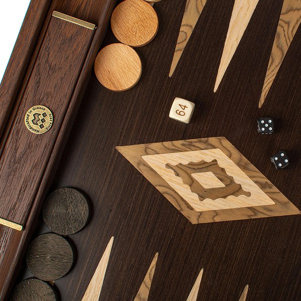 Нарди преміум-класу Manopoulos Wenge з горіховим шпоном та фішками з перламутру