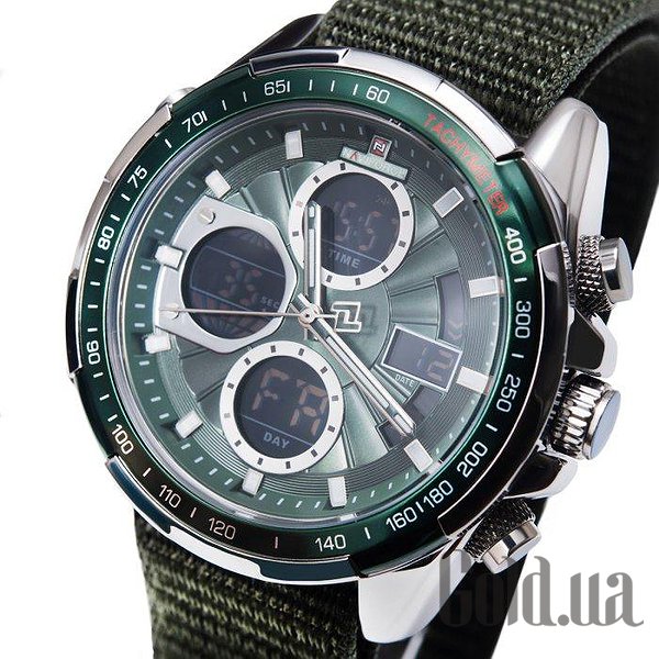 Функції Будильник, підсвічування, секундомір, час показується на циферблаті та стрілками, дата, день тижня, місяць, таймер, другий час (Dual Time)