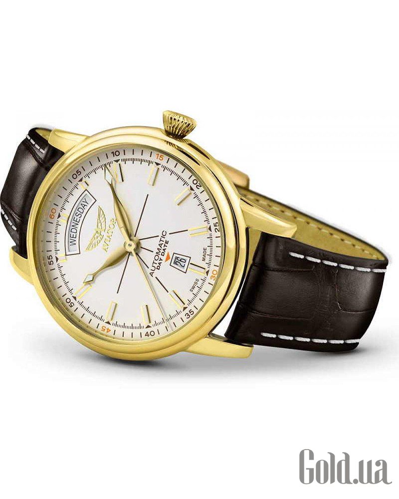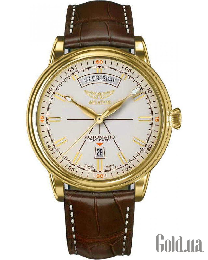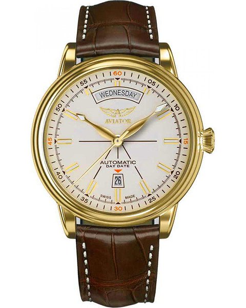 На циферблаті годинника AVIATOR Douglas Day Date, що переливається, застосована обробка в техніці «сонячний промінь». У витонченому вигнутому вікні відображаються дні тижня, є також вікно у формі трапеції з індикацією дати. Читання циферблата є невід'ємним елементом годинника AVIATOR. Douglas DayDate вдало поєднують стиль ар-деко з елементами функціональності забезпечуючи високу читаність циферблату. Відполіровані металеві мітки та витончені стрілки у поєднанні зі світломасою SuperLuminova, а також вдалий поділ індикації дня тижня та дати дозволяє швидко та легко зчитувати інформацію. Все це робить цю модель позачасовим взірцем годинникового мистецтва.