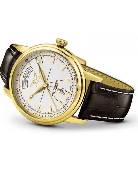 Всі без винятку ремінці для годинника AVIATOR створюються з найкращих матеріалів та відображають дух та концепцію колекції. Чудовий шкіряний ремінець у стилі крокодилової шкіри пройшов спеціальну обробку. Пружність та гнучкість матеріалу забезпечується тривалим дубленням. Контрастний рядок підкреслює витончений стиль ар-деко. Ремінець має зручну розкладну застібку, яка закривається одним клацанням. Для зміни довжини ремінця достатньо перемістити застібку у потрібному напрямку.