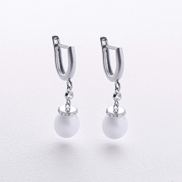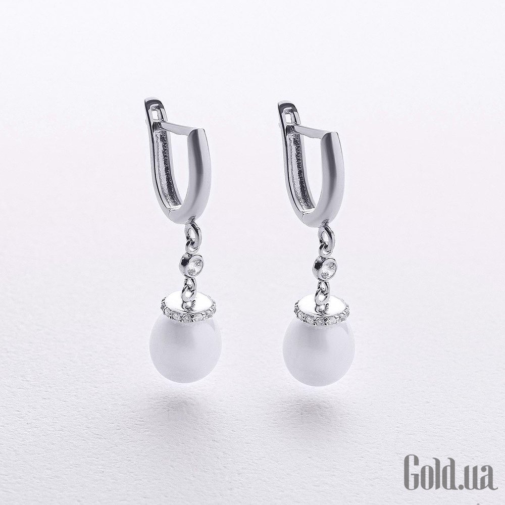 Золоті сережки з куб. цирконіями та культив. перлами