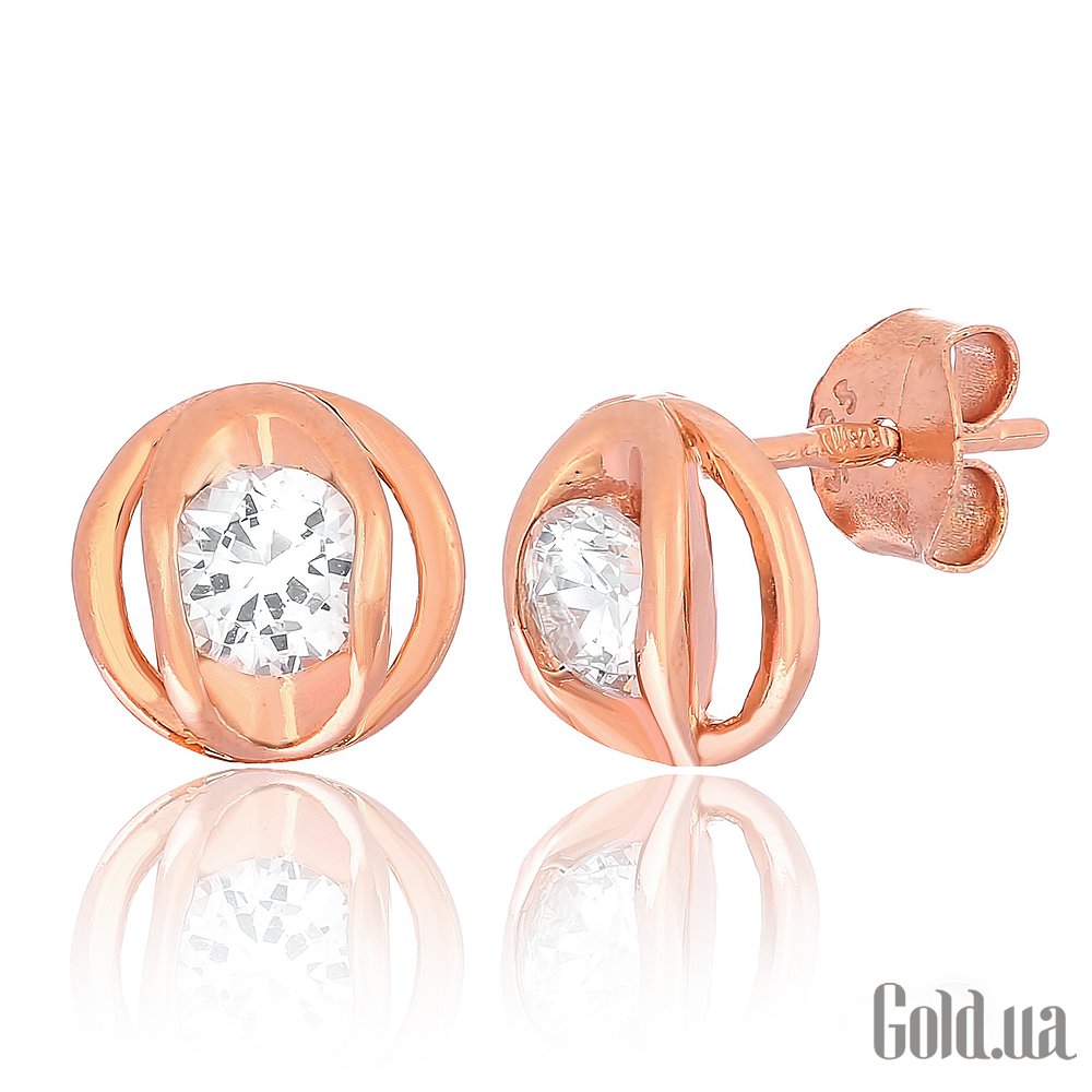Срібні сережки з куб. цирконіями в позолоті