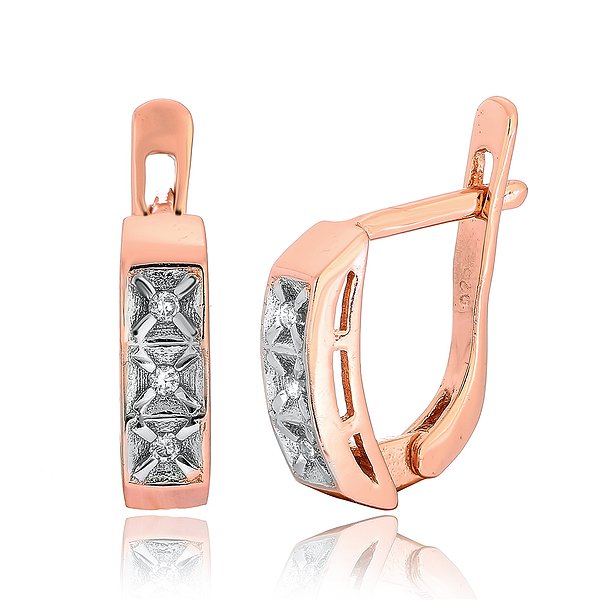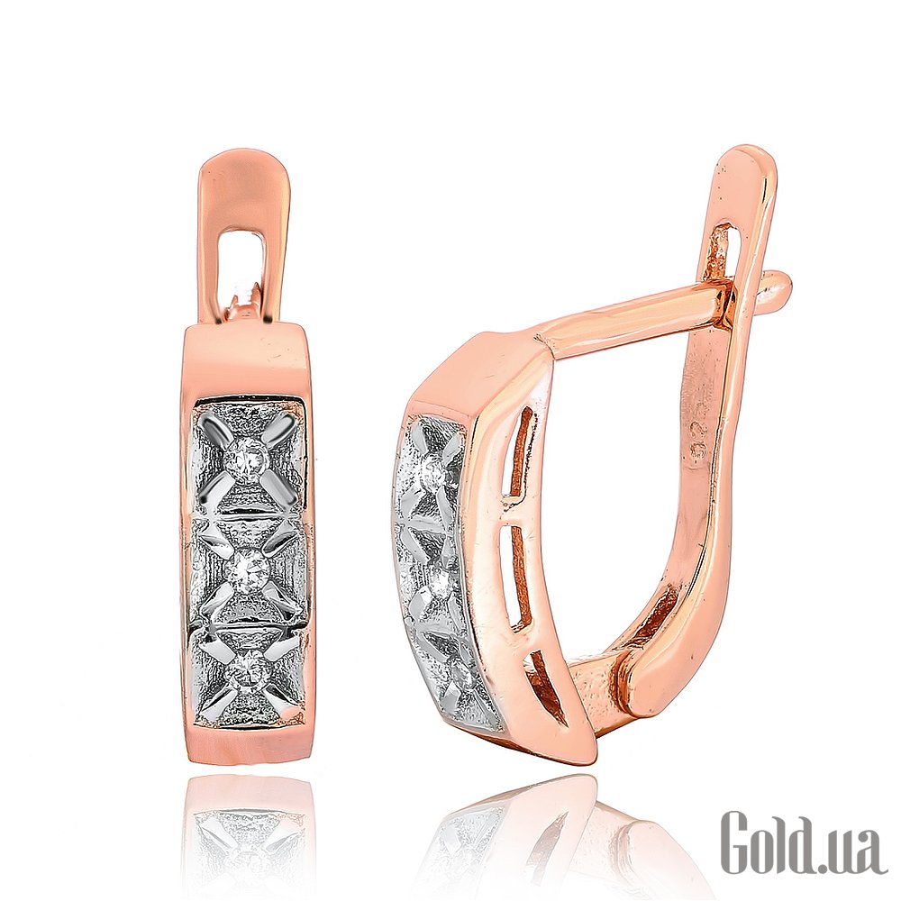 Срібні сережки з куб. цирконіями в позолоті