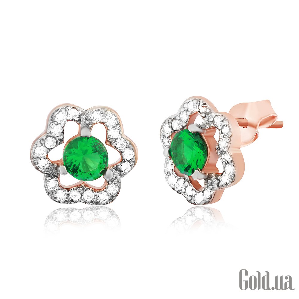 Срібні сережки з куб. цирконіями в позолоті