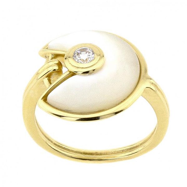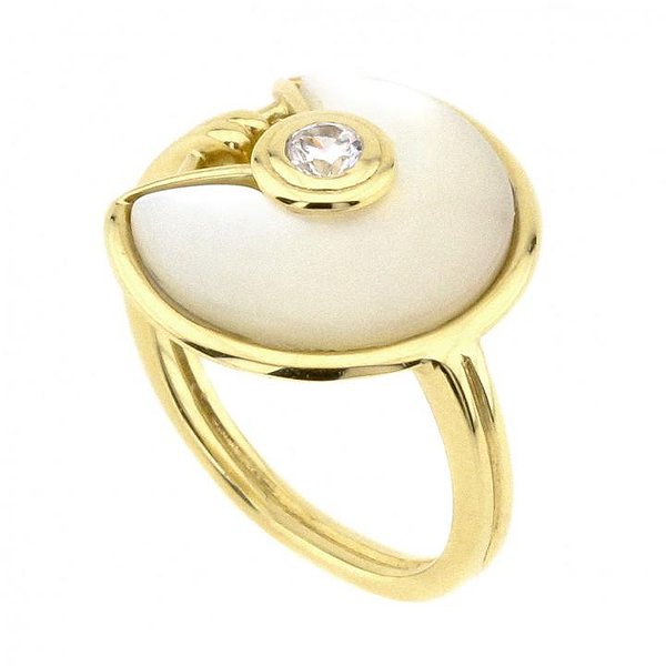 Жіноча золота каблучка з перламутром і куб. цирконієм