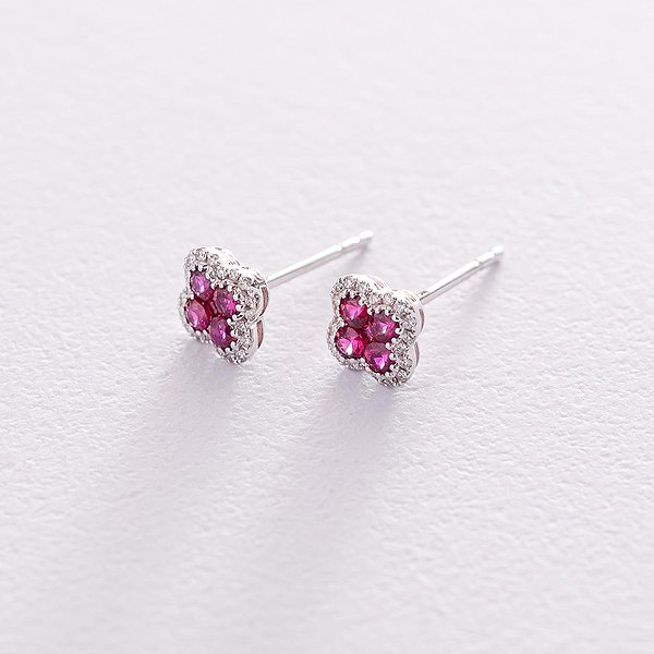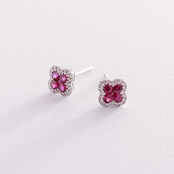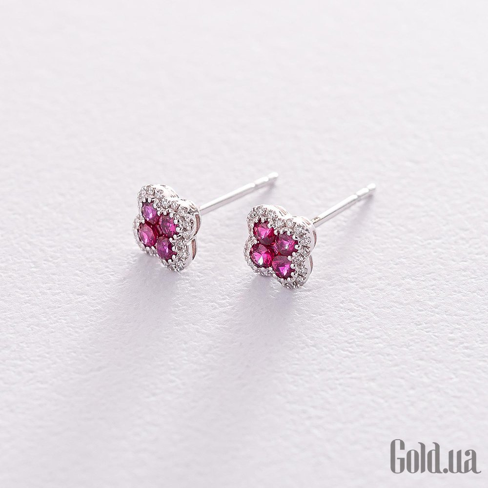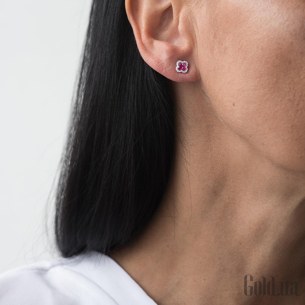 Золоті сережки з діамантами та рубінами