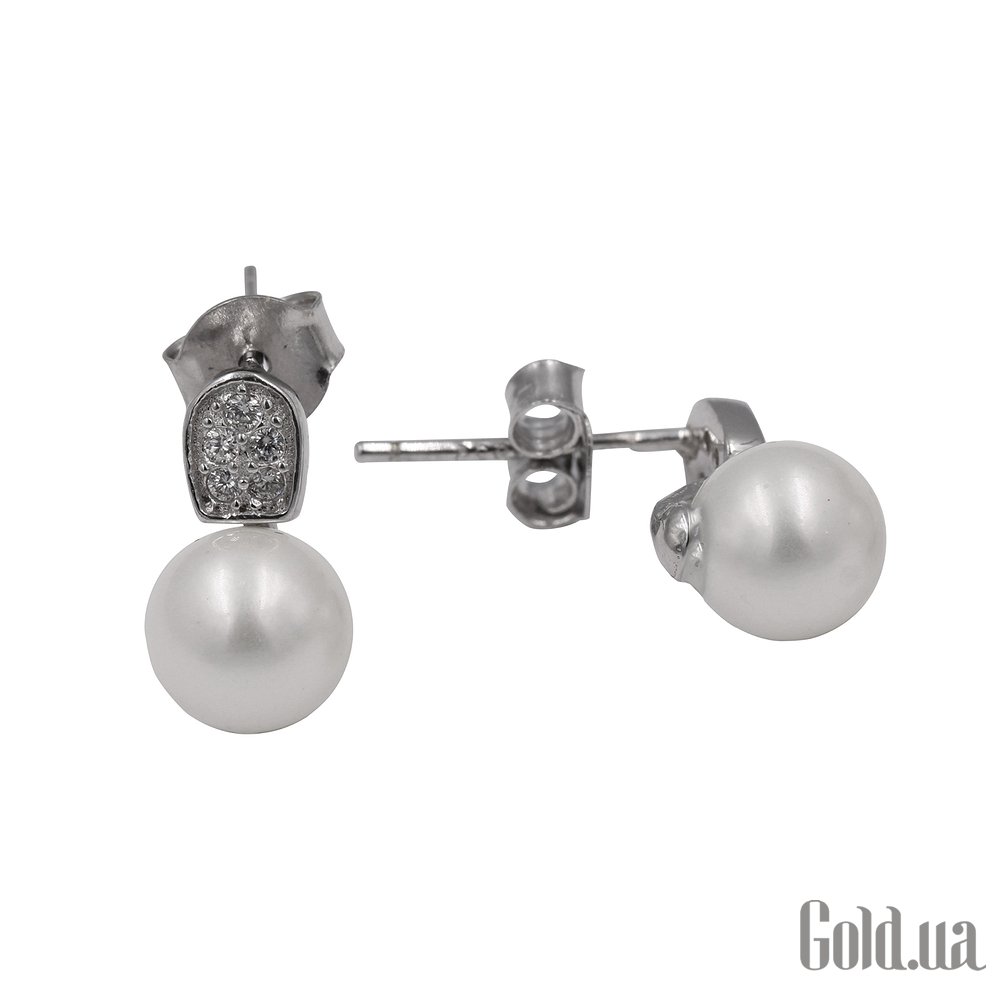 Срібні сережки зі штучн. перлами і куб. цирконіями
