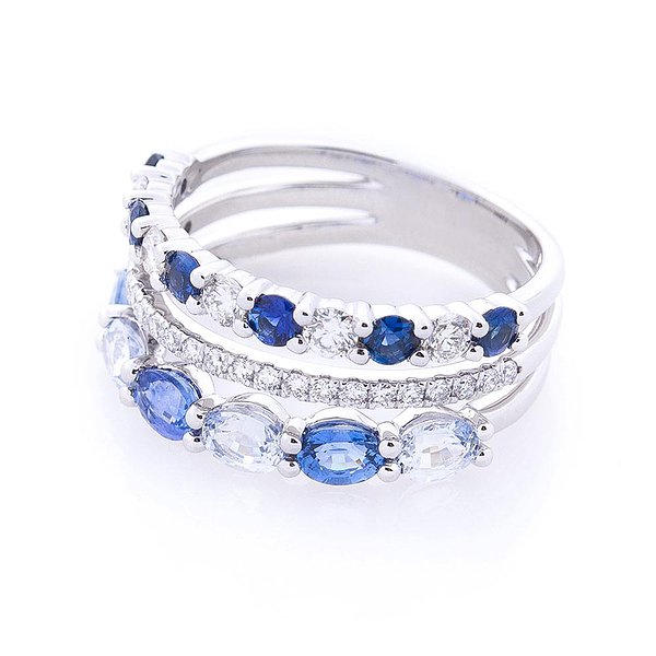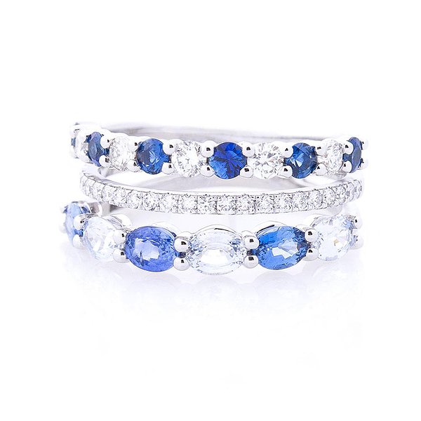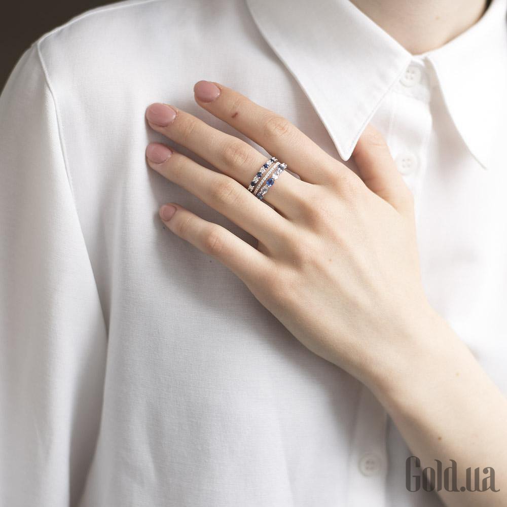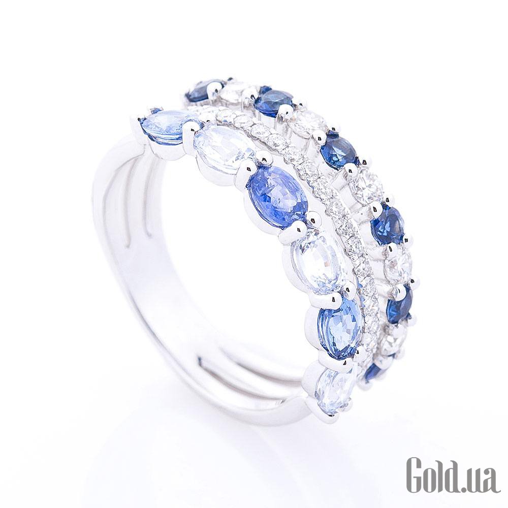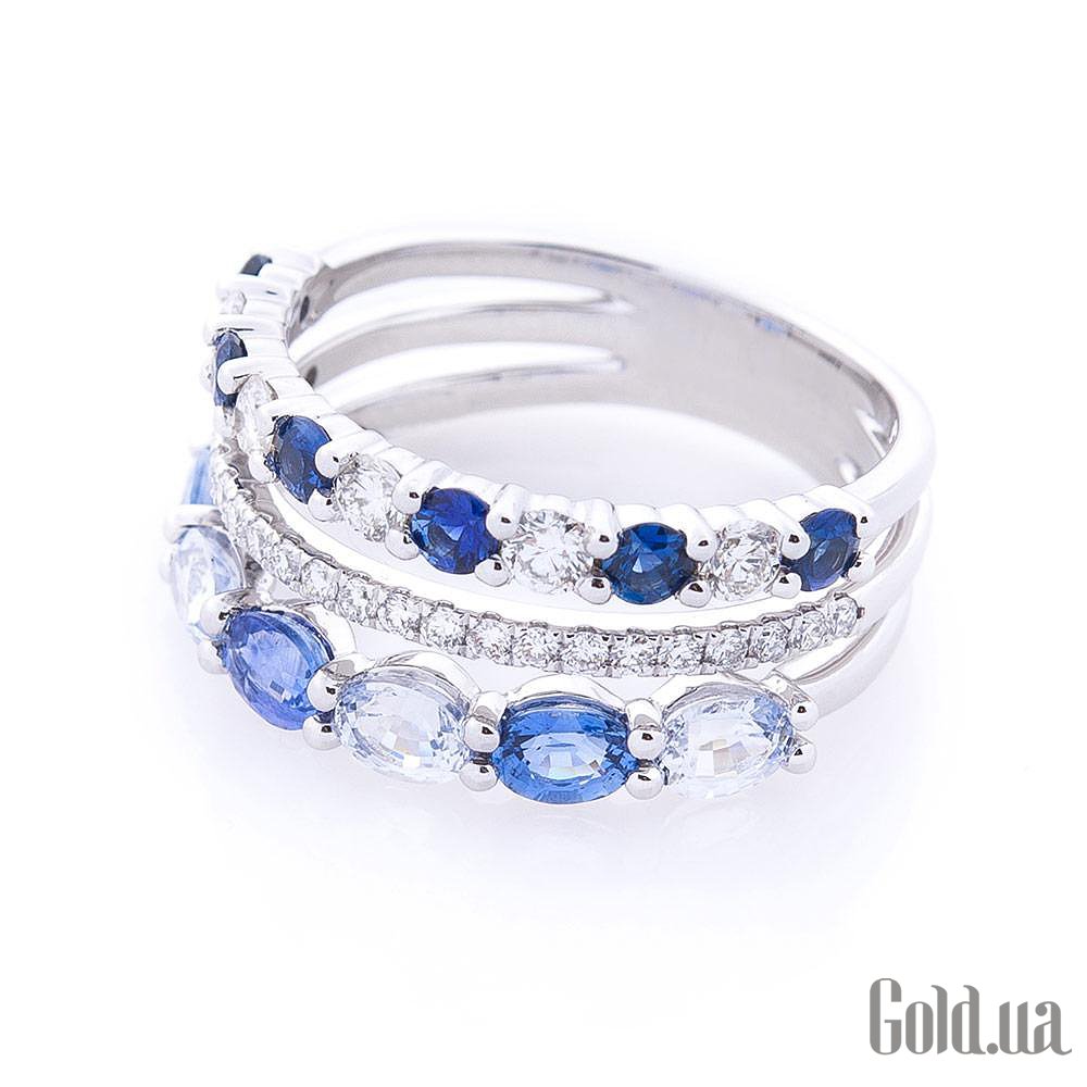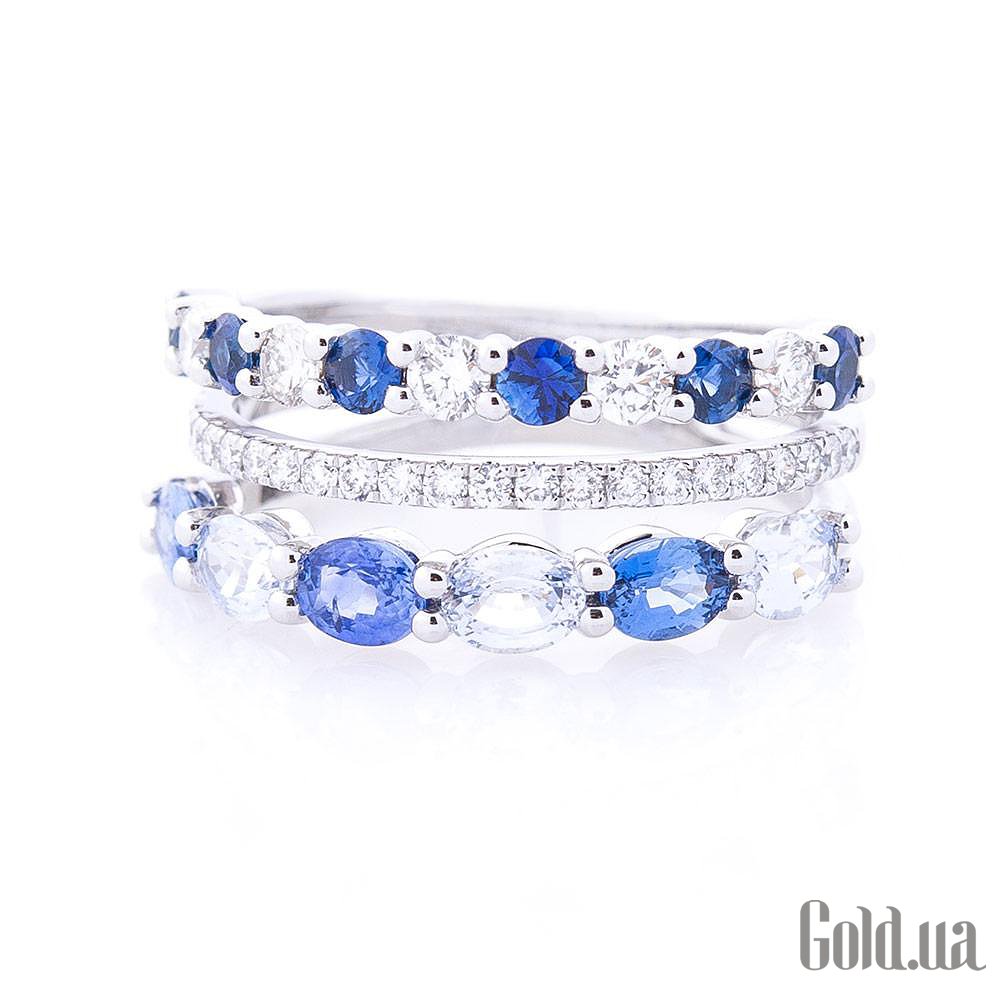 Жіноча золота каблучка з діамантами і сапфірами