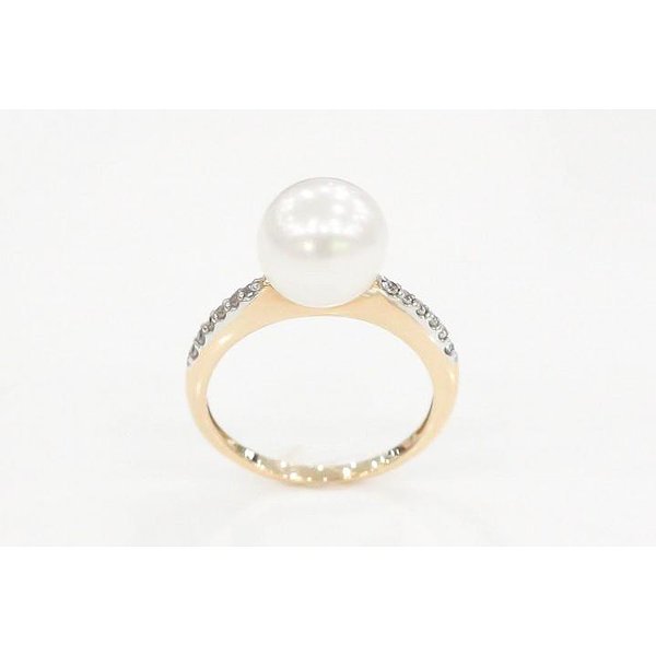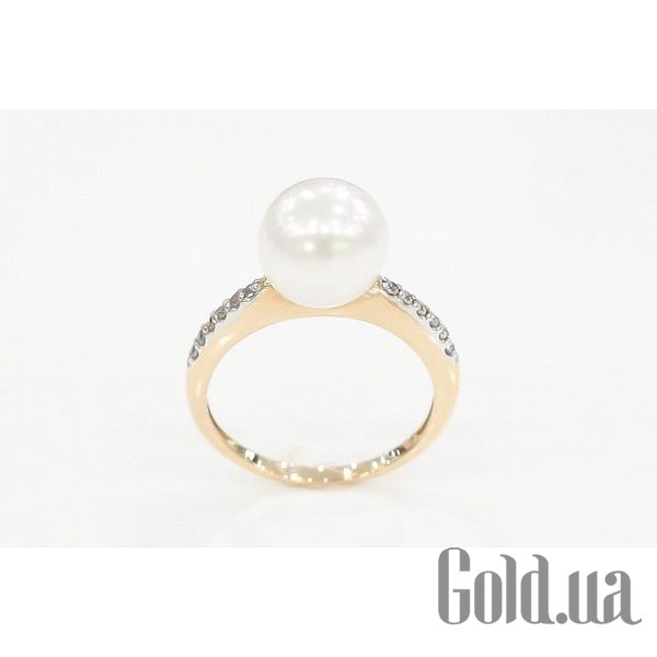 Жіноча золота каблучка з перлами і куб. цирконіями